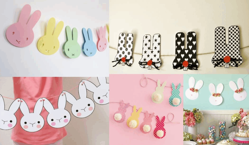Me encanta cómo un simple banderín puede transformar un rincón en algo festivo y alegre. Para Pascua, los banderines con formas de zanahorias, huevitos o conejitos quedan divinos. Podés hacerlos con cartulina de colores o papel kraft para un estilo más rústico.