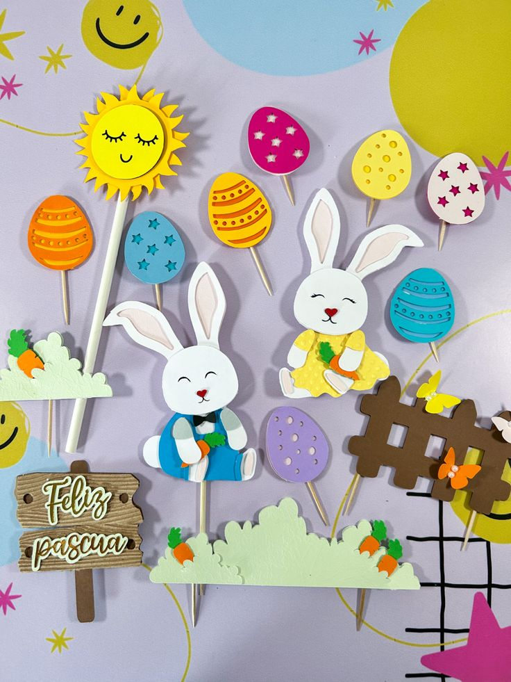 Si vas a armar una mesa dulce, los toppers no pueden faltar. Con cartulina y palitos de brochette o escarbadientes, podés hacer mini conejitos, huevitos y zanahorias para decorar cupcakes o tortas. Incluso podés agregar frases como Feliz Pascua en lettering para un detalle más personalizado.
